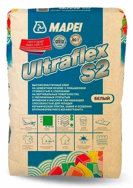 Клей для плитки Mapei Ultraflex S2, белый 25 кг.