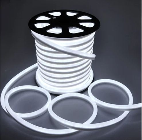 Гибкий неон – это совершенно новый и уникальный подход к созданию наружной рекламы и ярких вывесок! Продукт представляет собой мощную светодиодную ленту, облачённую в ПВХ оболочку, создающую яркий и при этом «мягкий» равномерный свет. Благодаря высокой степени влагозащиты, данный вид ленты пригоден как для наружного, так и для внутреннего использования, а за счёт своей гибкости отлично подходит для создания декоративных надписей, оформления фасадов зданий, освещения вывесок магазинов. Особенности гибкого неона 220 Вольт: прямое подключение к сети 220 Вольт; степень защиты IP67 – может использоваться как в помещении, так и на улице; удобная упаковка в катушки по 50 метров, что является оптимальным решением для монтажа большой длины; идеальная замена стандартному неону; простота монтажа, удобство обслуживания.