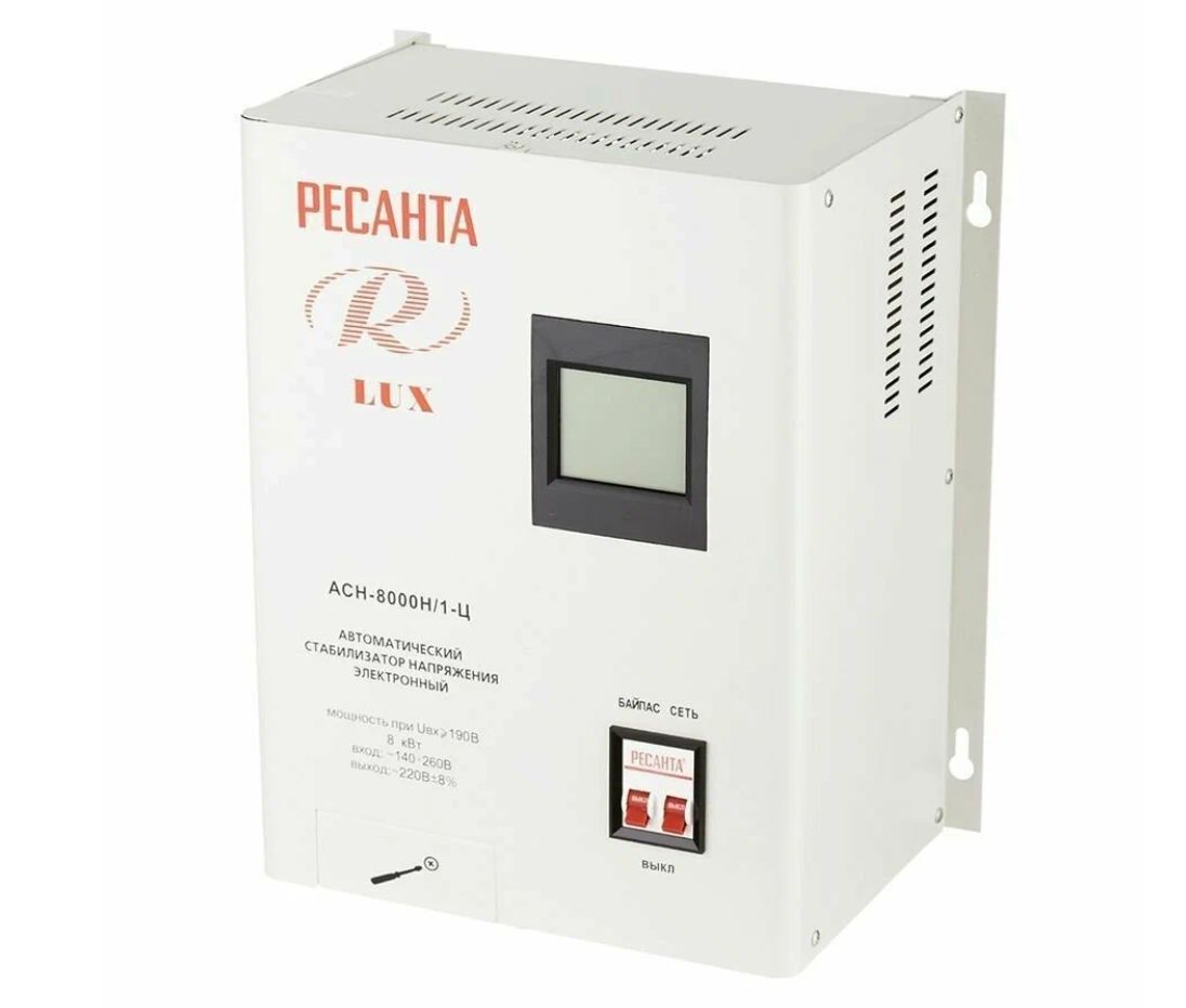 АСН – модель стабилизатора,1 – однофазный, Ц – цифровой: переносной, 8000 – мощность стабилизатор в вт Lux – настенный, Ресанта – фирма производитель.