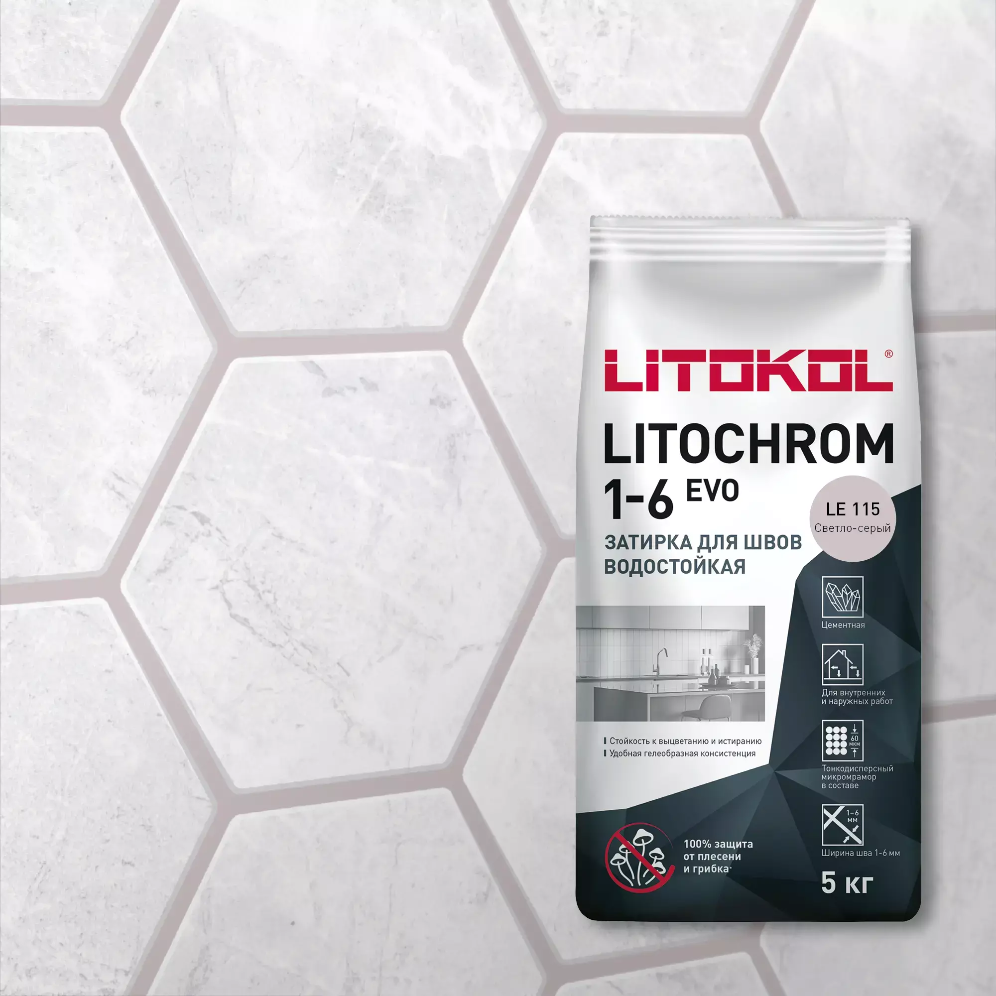 Затирка швов цементная Litokol Litochrom 1-6 Evo LE.115 светло-серый, алюм.мешок 5 кг