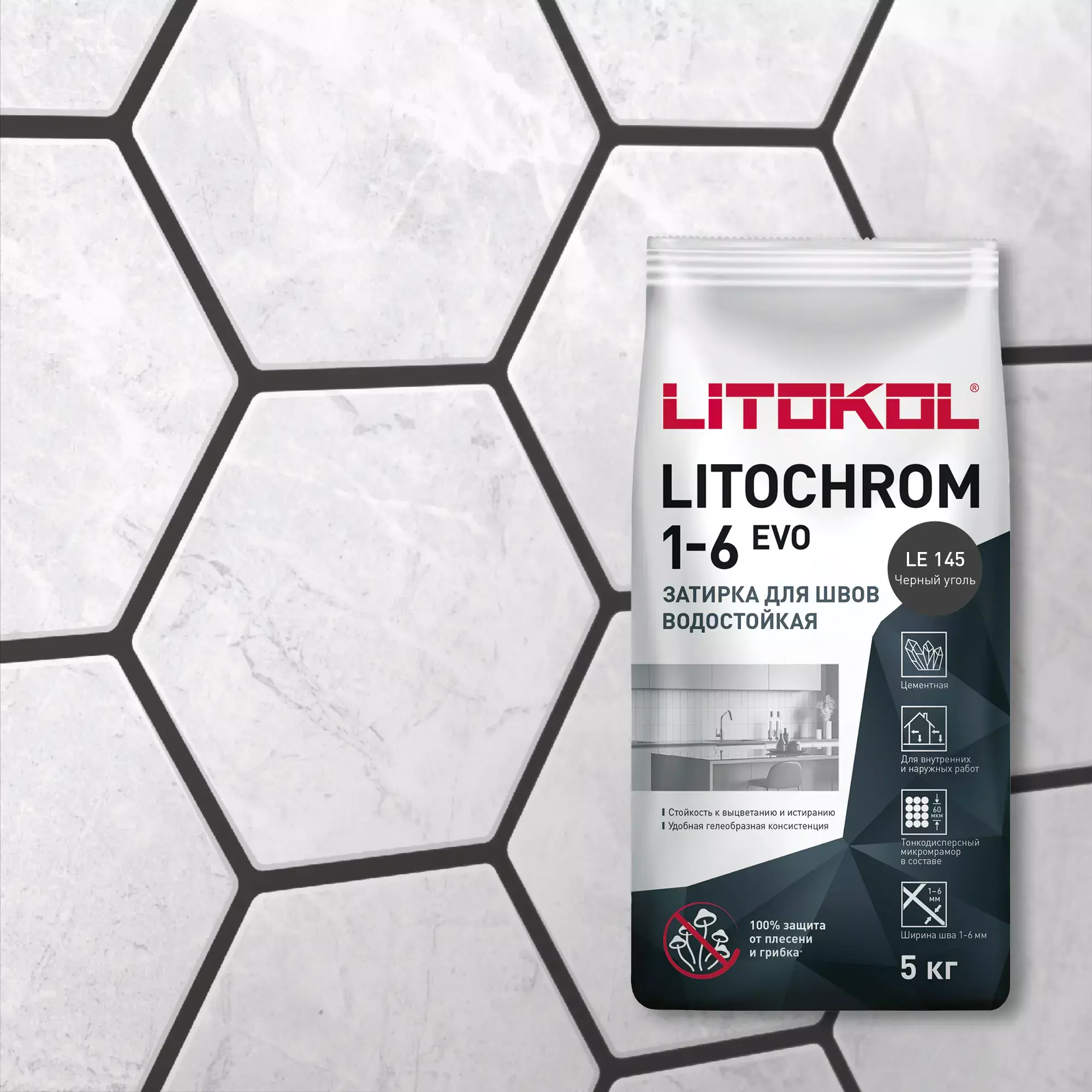 Затирка швов цементная Litokol Litochrom 1-6 Evo LE.145 черный уголь, алюм.мешок 5 кг